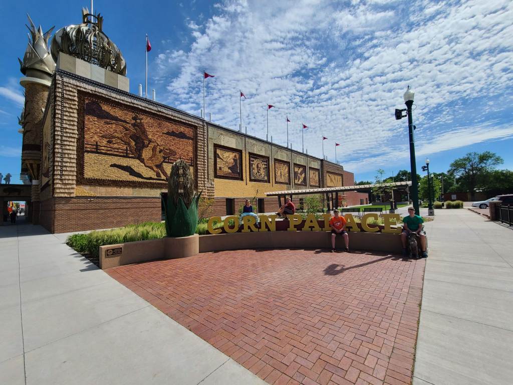 The next day we headed  out for the Badlands. Our first stop was Mitchel, SD. Mitchell is clearly a town built on agriculture. But is also home of the Corn Palace. It’s not that corn bought the naming rights for this place. Inside and out it is covered with corn. About a half a million people stop by and visit the corn palace each year. It was first built way back in 1882. There have been multiple buildings since then but they all have been covered with corn. I know it sounds corny. We had heard that it was not that great and we considered not stopping. But let me tell you the Corn Palace is definitely worth the stop. Inside and out are huge murals, all made up of locally grown corn of different varieties and colors and they are amazing! I would say it’s more of a venue than a palace but it is not to be missed. There is a large theater where concerts and other productions are held. The local high school plays all they’re home basketball games in the Palace.  The murals are redone about every two years so in a sense it is always new. We were so glad we stopped. Awe shucks, you don’t want to miss it. It’s just a very short drive off of I-90 so next time don’t drive by be sure a pop in.