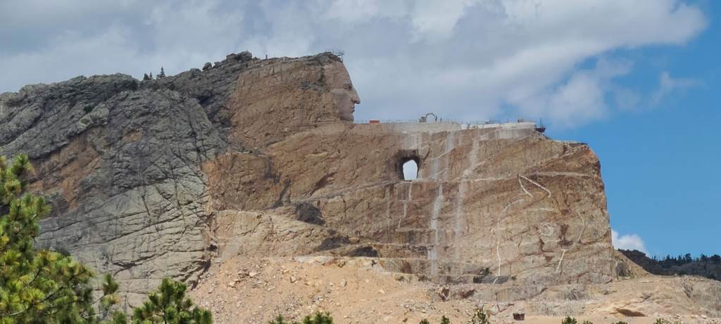 I suppose the biggest attraction in the area is Mt. Rushmore National Monument. It certainly is a majestic sight and amazing feat. It’s one of those sights that stirs your emotions and raises your pride in our Country. About eleven miles away is the Crazy Horse Monument. This is the largest mountain carving in the world. It was begun in 1948 by Korczak Ziolkowski and the work continues today under the leadership of his family. This is a private enterprise so I’m sure money is always a factor. The carving when completed will feature Chief Crazy Horse riding his horse and pointing into the future. It is already an amazing carving but I would guess it’s only a quarter of the way to completion. While there we got to see a Native American Dance demonstration. It was very impressive and even more informative. We were all glad we had made this stop.