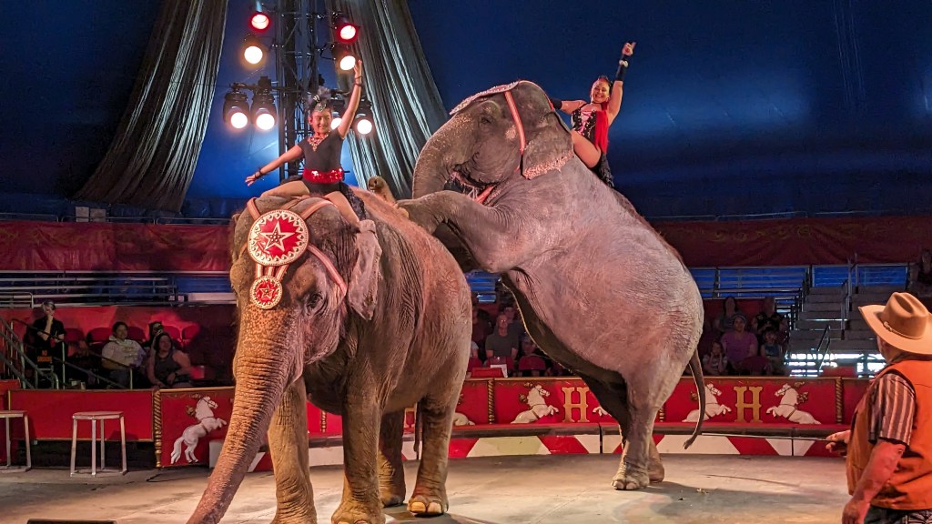 The circus theme this season is “Go West.” All the acts had a Western theme. There were all kinds of acts. Animal acts included goats, llamas, horses, and elephants. There were acts of skill and daring. And there was some clowning around. We felt like the circus performance alone was worth the cost of admission.