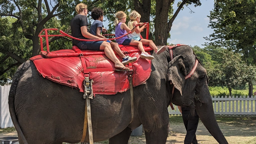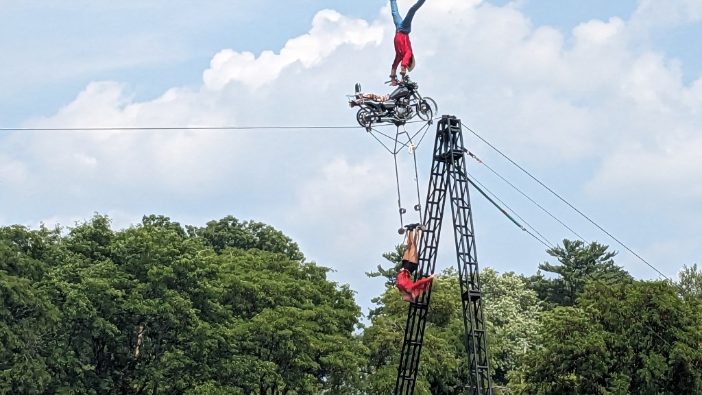 All the acts were enjoyable. I particularly enjoyed “Trunk Tales.” The museum’s two elephants were brought out, and their trainer came out with them and just told us all about them. This is the last season there will be elephants at the museum. Due to the pressure of animal rights advocates, the elephants are being retired and moved to an elephant retirement home in Oklahoma. After the show, I talked with the trainer and asked him how he became an elephant trainer. He is the ninth generation of circus performers. As a boy, he enjoyed hanging out with the elephants. He became a pooper scooper and simply grew into the job of a trainer. He has worked with these two elephants for twenty-nine years, and when they retire this fall, he will be moving to Oklahoma with them.